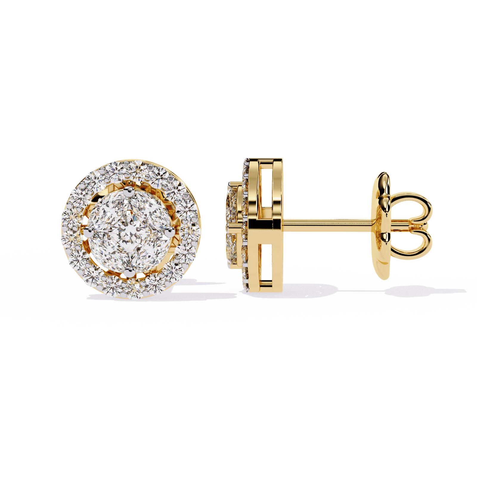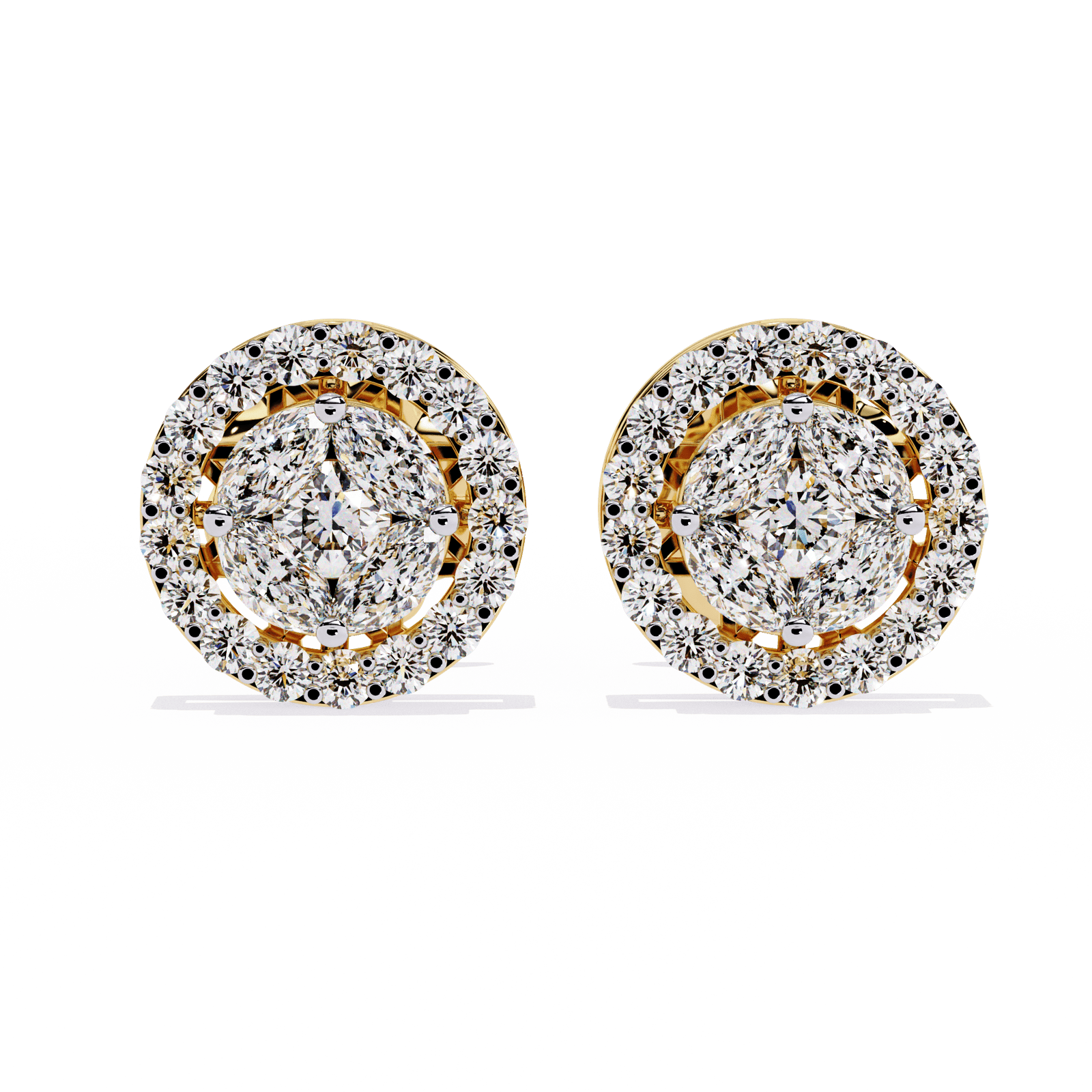Fit for modern royalty, the Celestial Coronation earrings exude majestic splendor with their intricate double halo design, cradling a radiant quartet of marquise-cut diamonds that shimmer like a crown’s centerpiece. Weighing 5.92 grams and encrusted with 1.51 carats of luminous diamonds, this regal pair—available in both yellow and rose gold—echoes the opulence of palace treasures, making every moment feel like a royal affair.