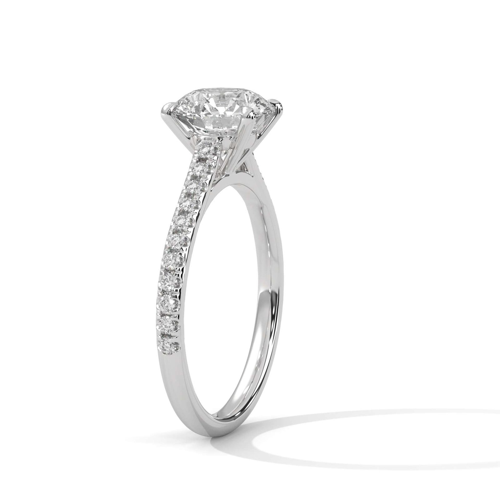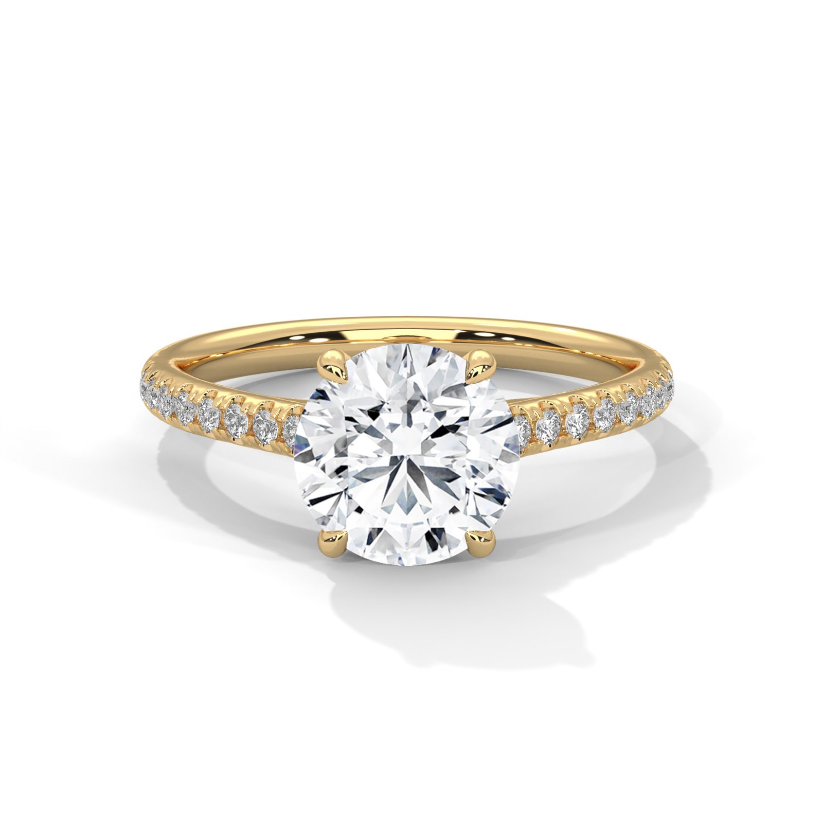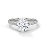 Designed with timeless grace, this stunning ring showcases a 1.92 carat round brilliant-cut diamond in a bold 6-prong setting. The band is elegantly accented with pavé-set diamonds, adding sparkle and sophistication from every angle. Perfect for engagements or milestones, this ring is crafted to impress and endure.
