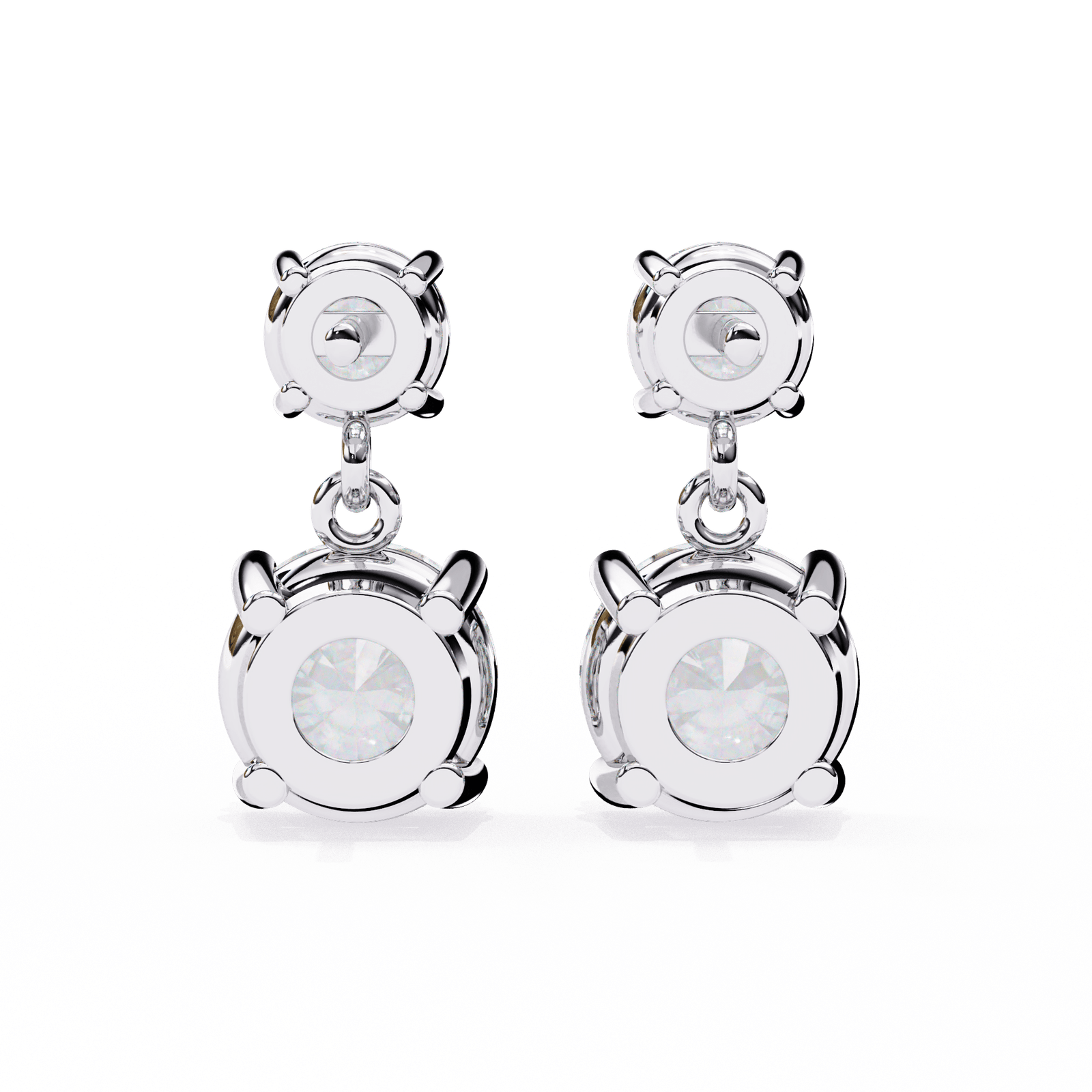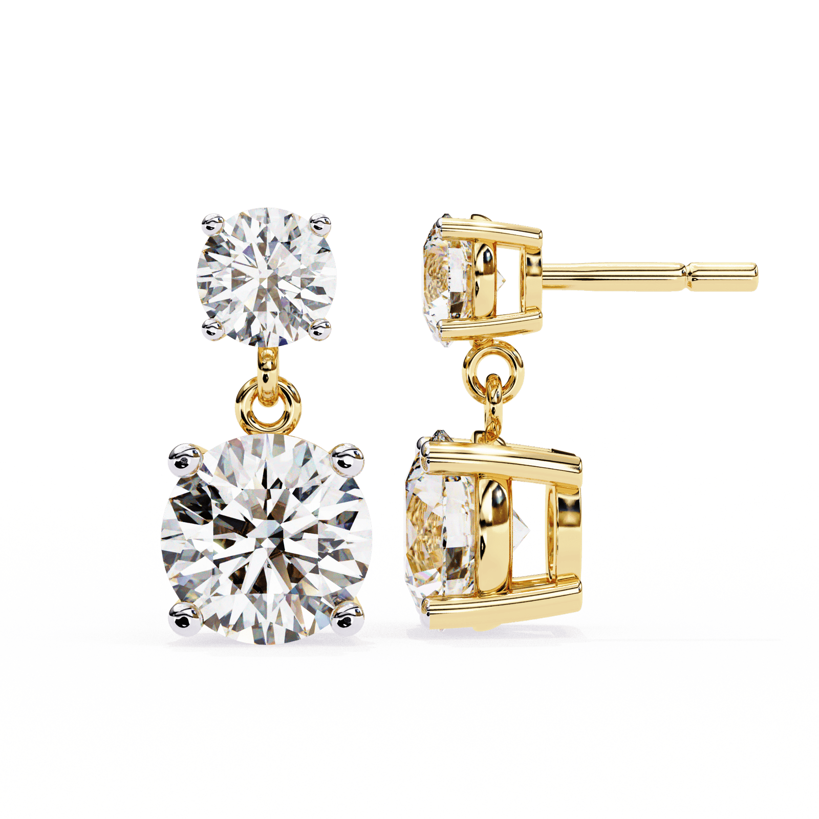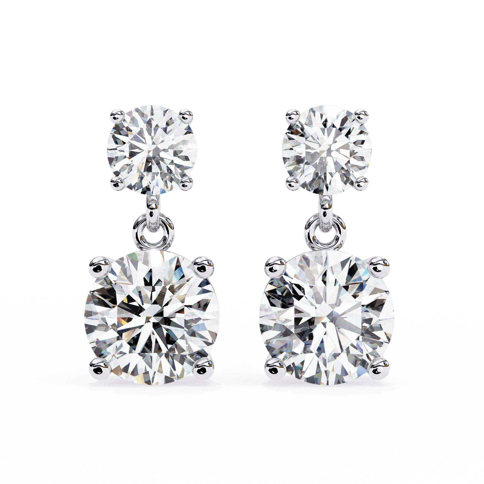 Elevate your elegance with these dual-stone round diamond stud earrings, designed with timeless appeal and modern sophistication. Each earring features a larger central round brilliant diamond (7.28 mm, 2.89 carats total) paired with a complementary smaller diamond (4.82 mm, 0.84 carats total), creating a dazzling layered look. Expertly crafted in 14K BIS hallmarked gold, the earrings have an estimated gold weight of 3.06 grams. With fine VS clarity and E-F color diamonds, certified by IGI, GIA, or SGL, these earrings combine premium quality with classic beauty. Backed by our lifetime exchange and return assurance, this pair is an enduring addition to any fine jewelry collection.