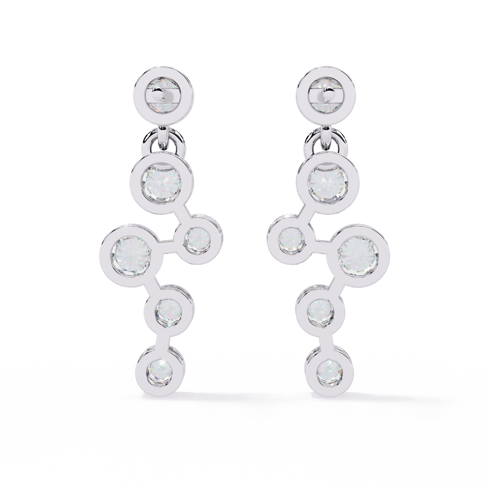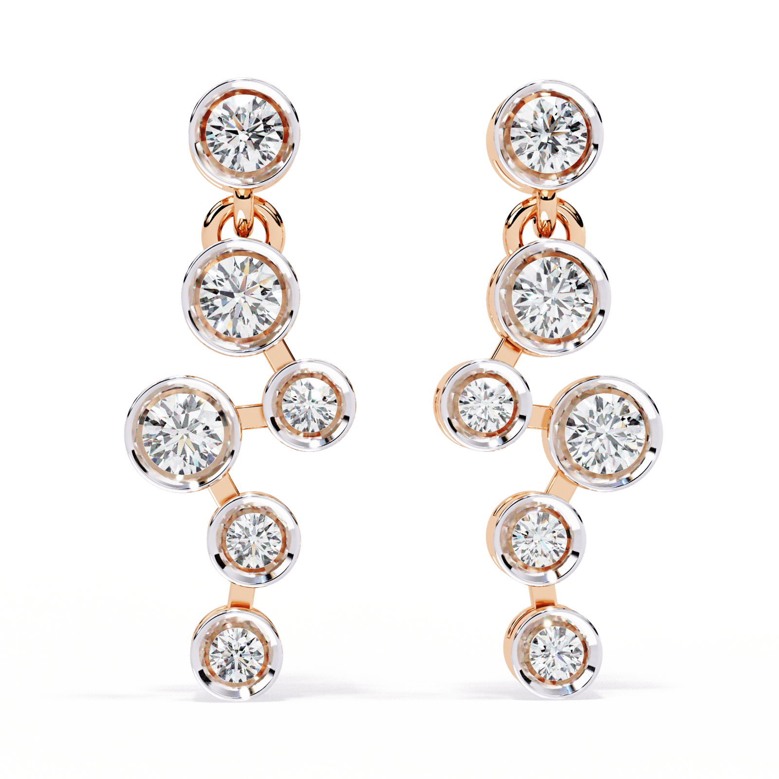 For the trendsetters and style pioneers—these earrings are where contemporary design meets timeless sparkle. Crafted in gleaming Gold, Rose Gold, Platinum, this pair features a chic cascade of bezel-set diamonds totaling 0.39 carats. With a lightweight feel of just 1.79 grams, they’re perfect for adding a whisper of luxury to your everyday look or giving your evening wear a minimalist, modern edge. The playful, geometric arrangement brings movement and a touch of artistic flair, making these earrings an effortless expression of bold elegance.