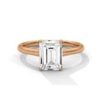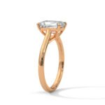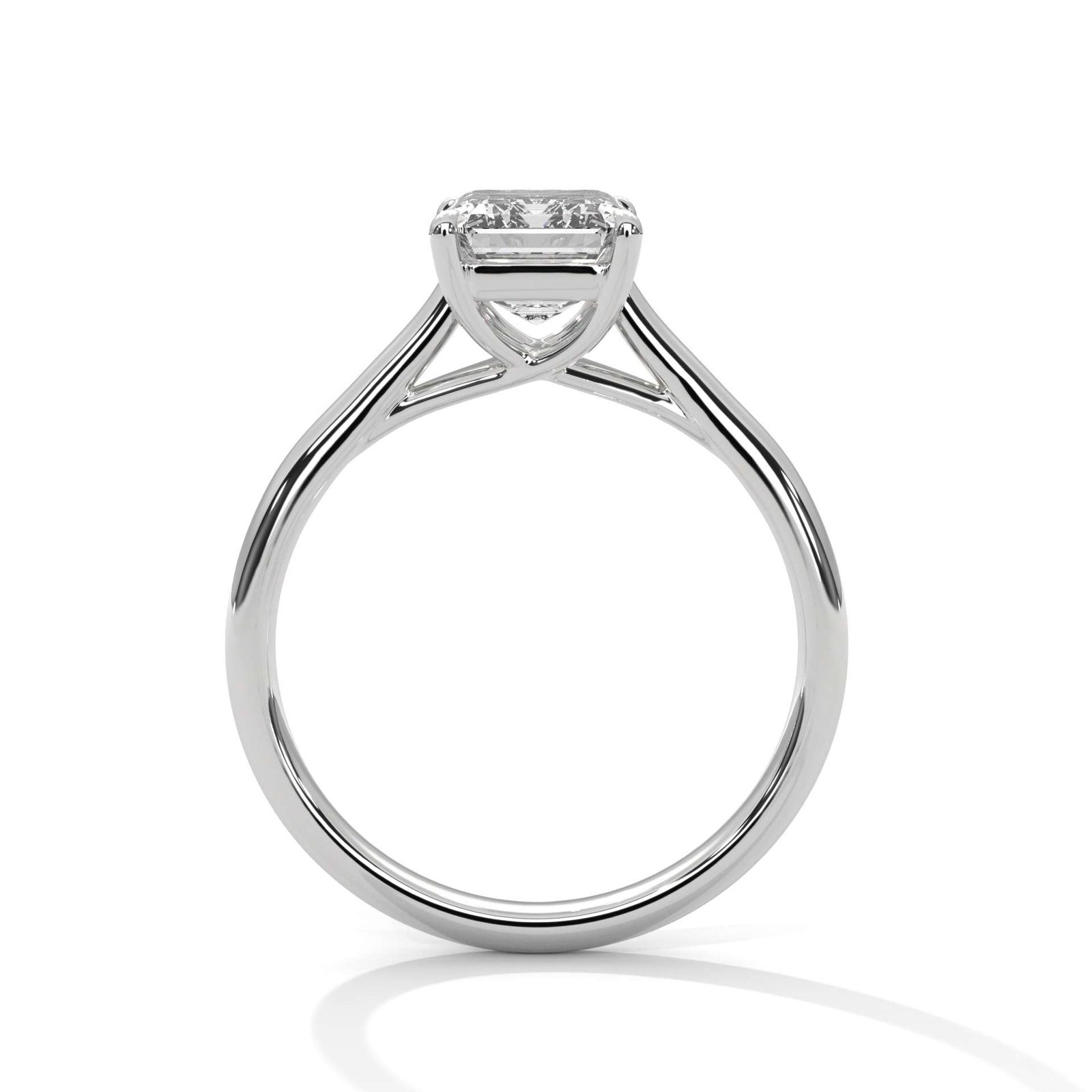 A striking embodiment of modern sophistication, this Emerald-cut solitaire ring—crafted in 18KT gold is designed for those who appreciate clean lines and timeless elegance. The centerpiece, a mesmerizing 2.00 carat emerald-cut diamond, is set in a minimal yet secure four-prong setting, allowing light to flow effortlessly through every facet. With a smooth, tapered band and architectural under-gallery, this piece is a perfect harmony of structure and style.