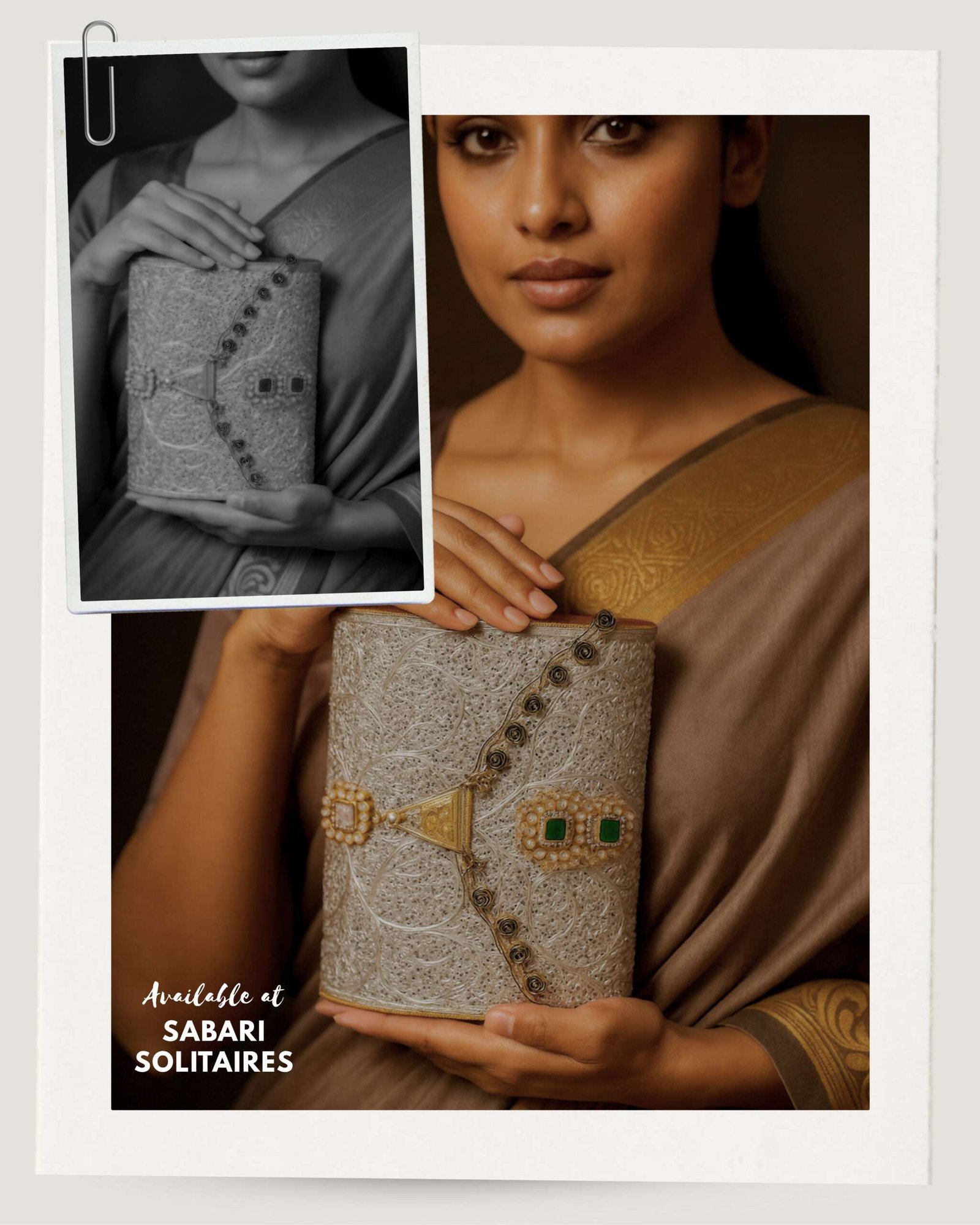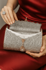 Combining the grandeur of traditional design with a modern silhouette, this Silver Clutch is more than an accessory—it’s a heirloom-worthy masterpiece.