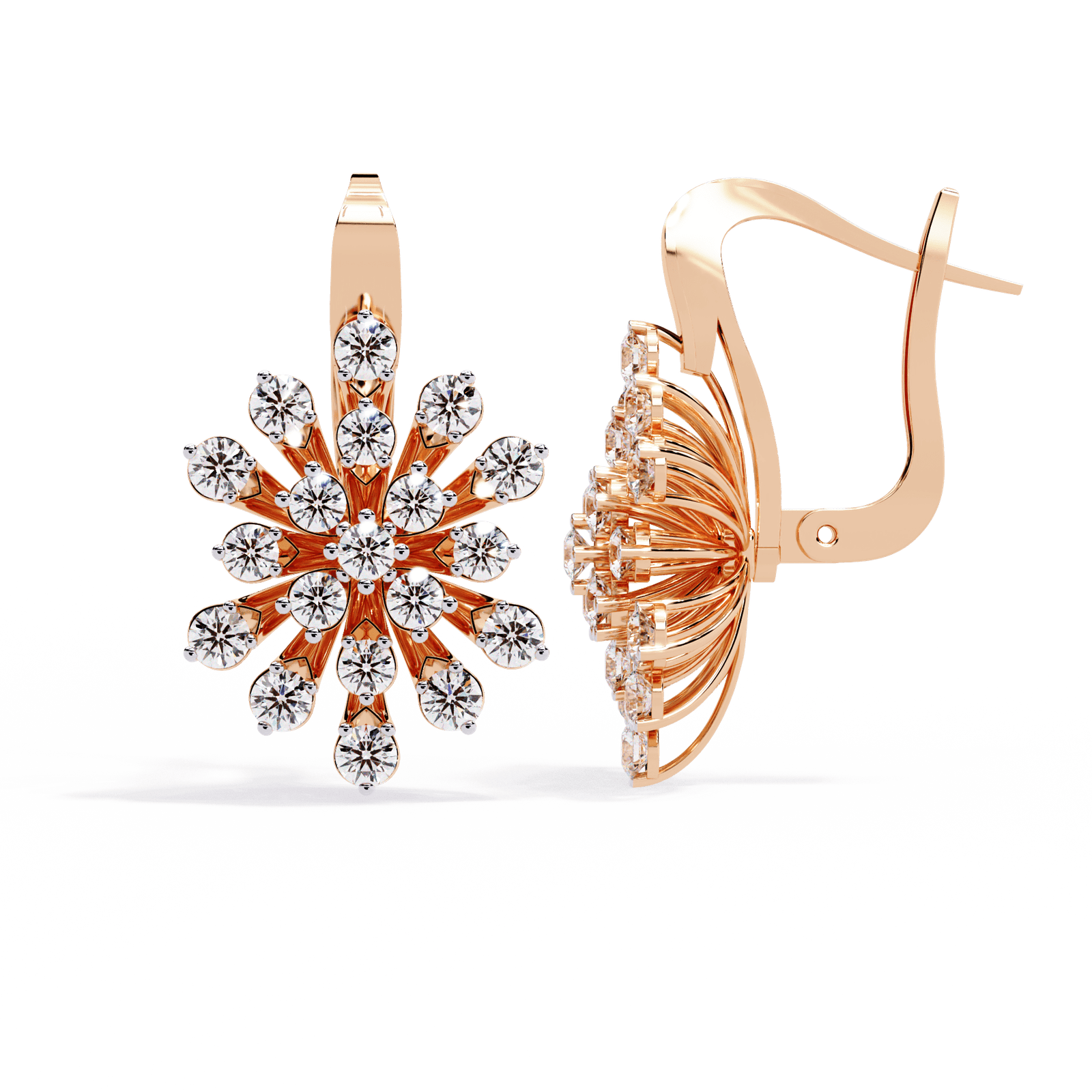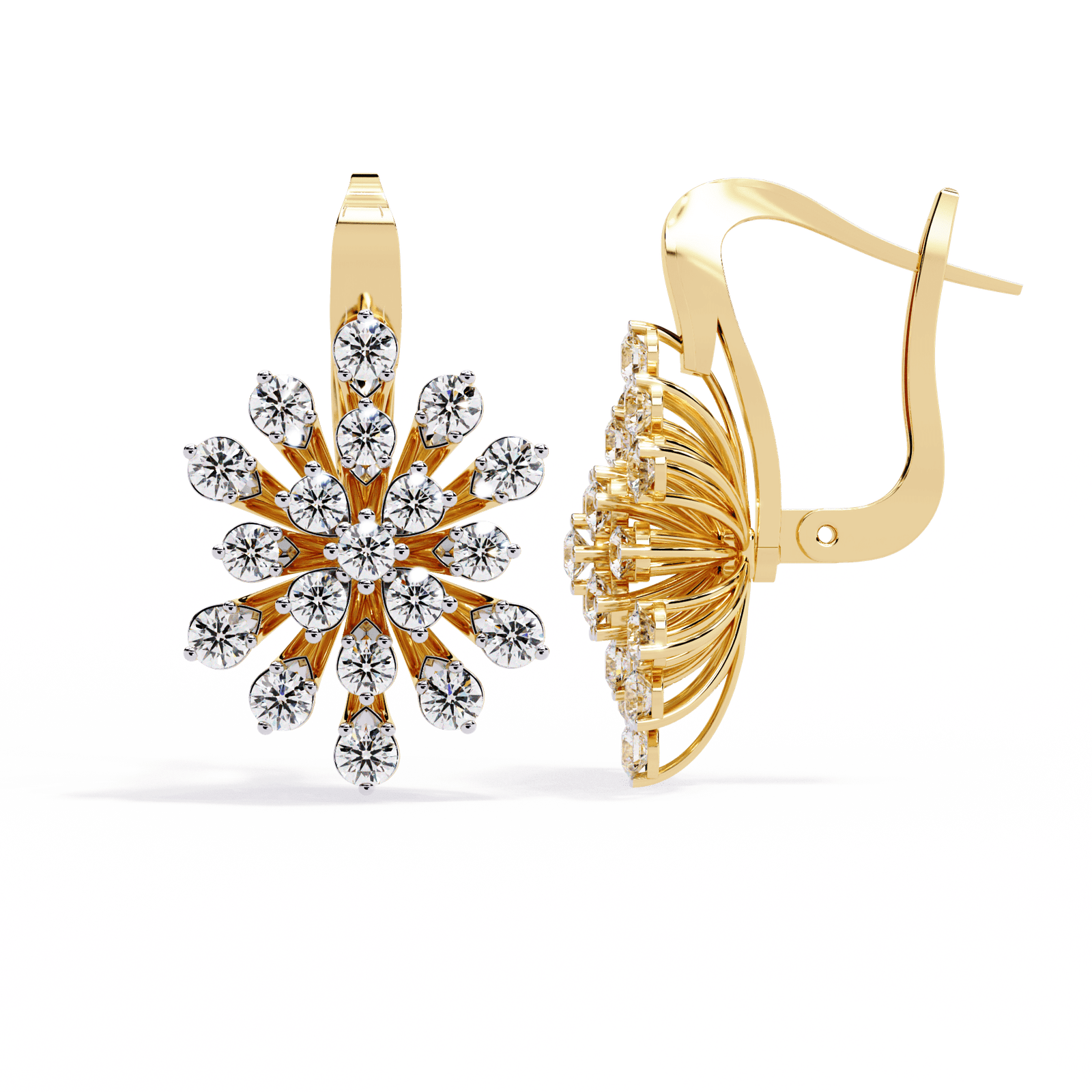 Step into the spotlight with the dazzling brilliance of these floral burst earrings—a masterpiece that captures the drama of fine jewellery and the grace of nature’s elegance. Weighing 8.06 grams and adorned with a total of 1.75 carats of perfectly set diamonds, these earrings blossom with radiance in every direction. The intricate layered design mimics a blooming flower, giving you a bold yet feminine statement piece. Whether in Gold, Rose Gold, or Platinum, they’re made to celebrate your most luminous moments.
