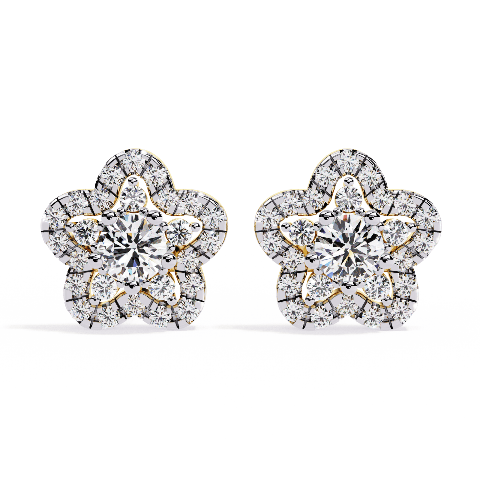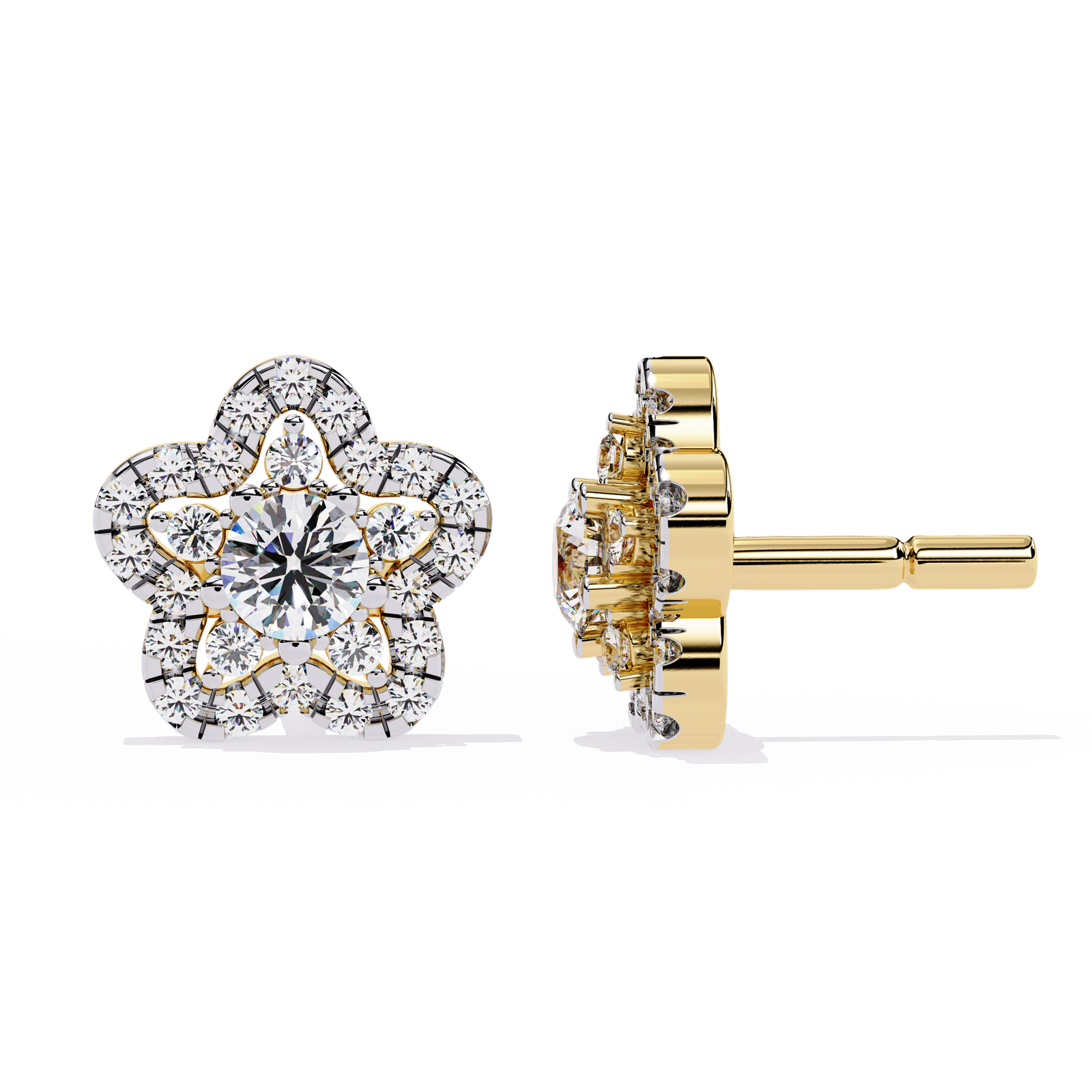 Delicate yet dazzling, these floral diamond earrings are a true celebration of timeless beauty and grace. Designed in the shape of a blooming flower, they feature a sparkling arrangement of diamonds totaling 0.87 carats, set in radiant yellow gold with a total weight of 3.95 grams. The intricate layering and brilliant symmetry create a captivating play of light, making them the perfect adornment for special occasions or everyday luxury. These earrings radiate charm, femininity, and refined sophistication in every detail.