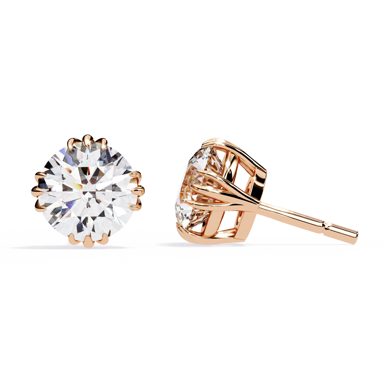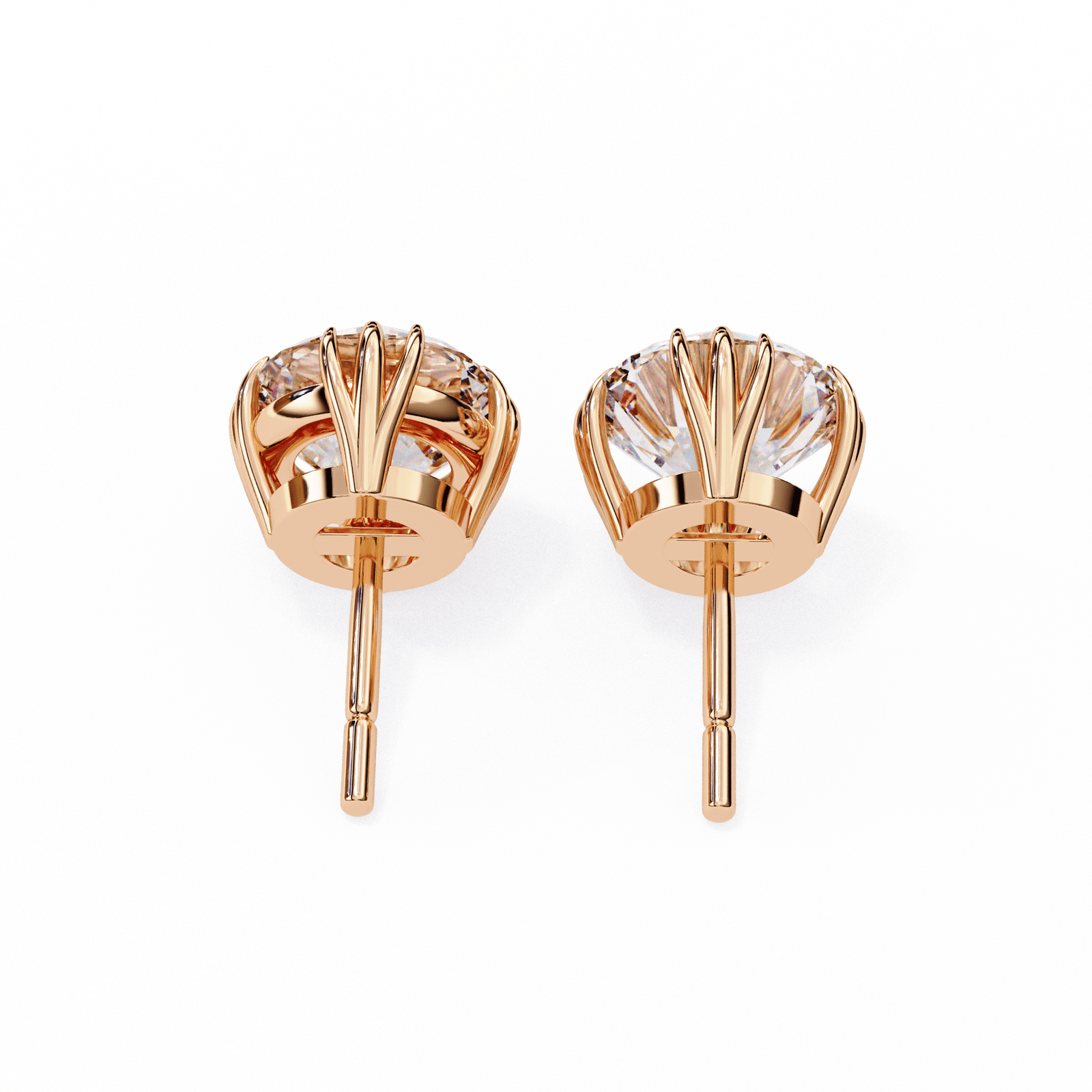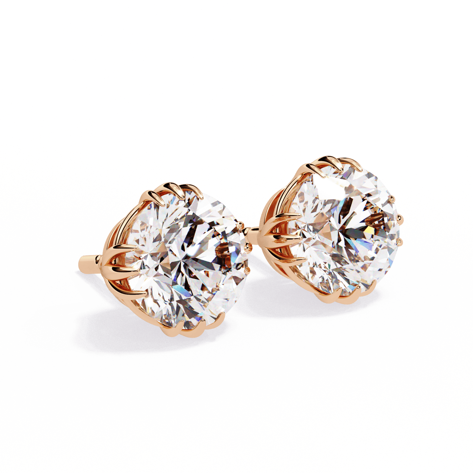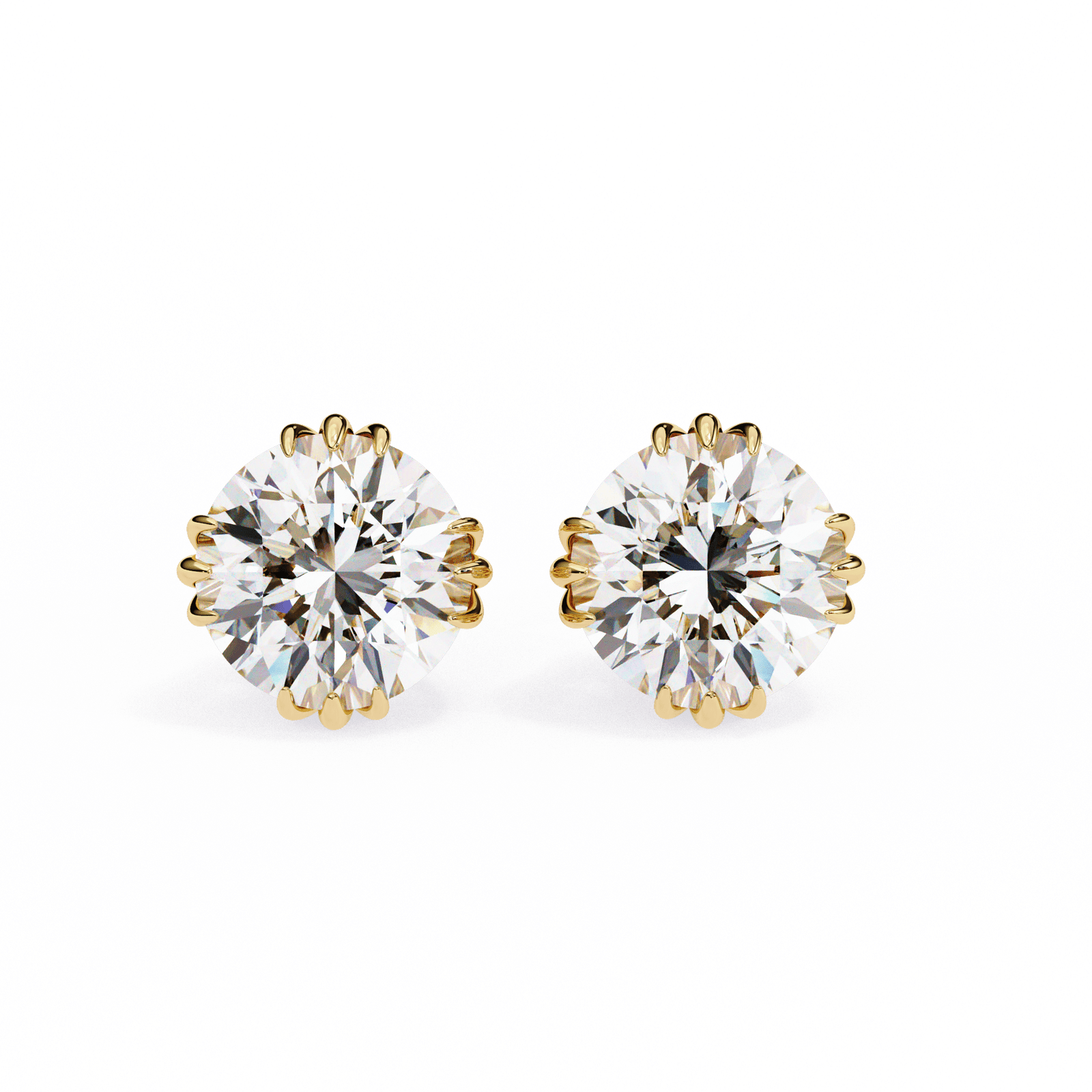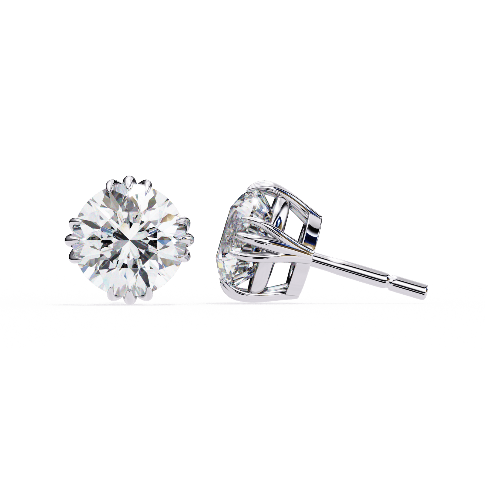 Crafted to perfection, these floral-inspired diamond stud earrings feature exquisite 7.00 mm round brilliant cut diamonds totaling 2.80 carats. Set in an intricate petal-style prong setting, the diamonds are securely mounted in 14K BIS-hallmarked gold with an approximate gold weight of 2.32 grams. These timeless beauties boast E-F color and VS clarity diamonds, ensuring brilliance and fire from every angle. Ideal for both everyday elegance and special occasions, each pair is certified by leading gemological labs such as IGI, GIA, or SGL