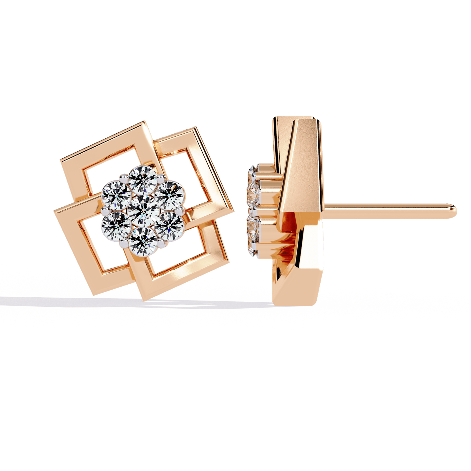 Where structure meets sparkle — the Geometric Bloom Diamond Studs feature a striking square overlay design paired with a dazzling diamond cluster at the center. Weighing 3.68 grams and set with 0.21 carats of fine diamonds, these earrings bring contemporary flair with timeless brilliance. Available in gold, rose gold, and platinum, they are perfect for both everyday elegance and evening charm.