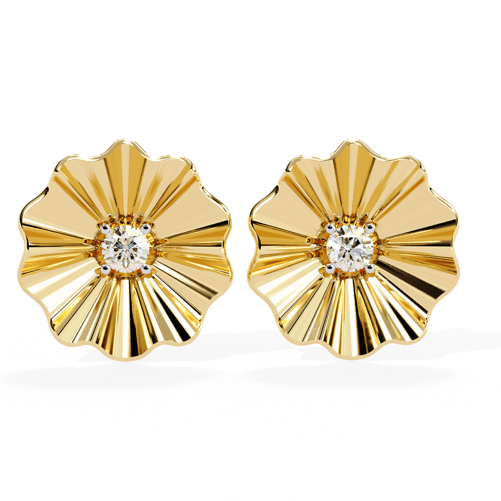 Delicate yet dazzling, our Golden Bloom Diamond Studs are designed to capture the essence of a blooming flower. Set with a 0.06 carat diamond at the center and weighing just 1.6 grams, this elegant piece is perfect for everyday luxury. Available in your choice of gold, rose gold, or platinum, it’s a graceful expression of minimal elegance with a sparkling touch.