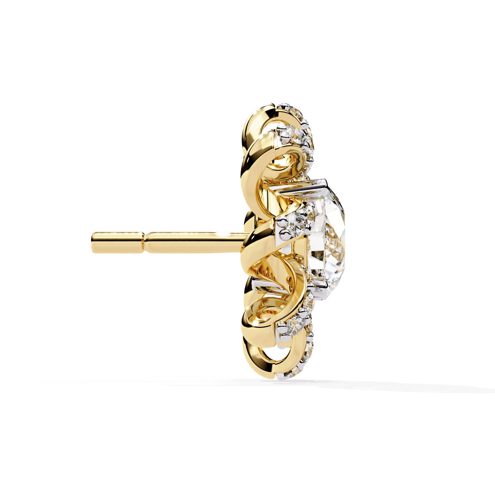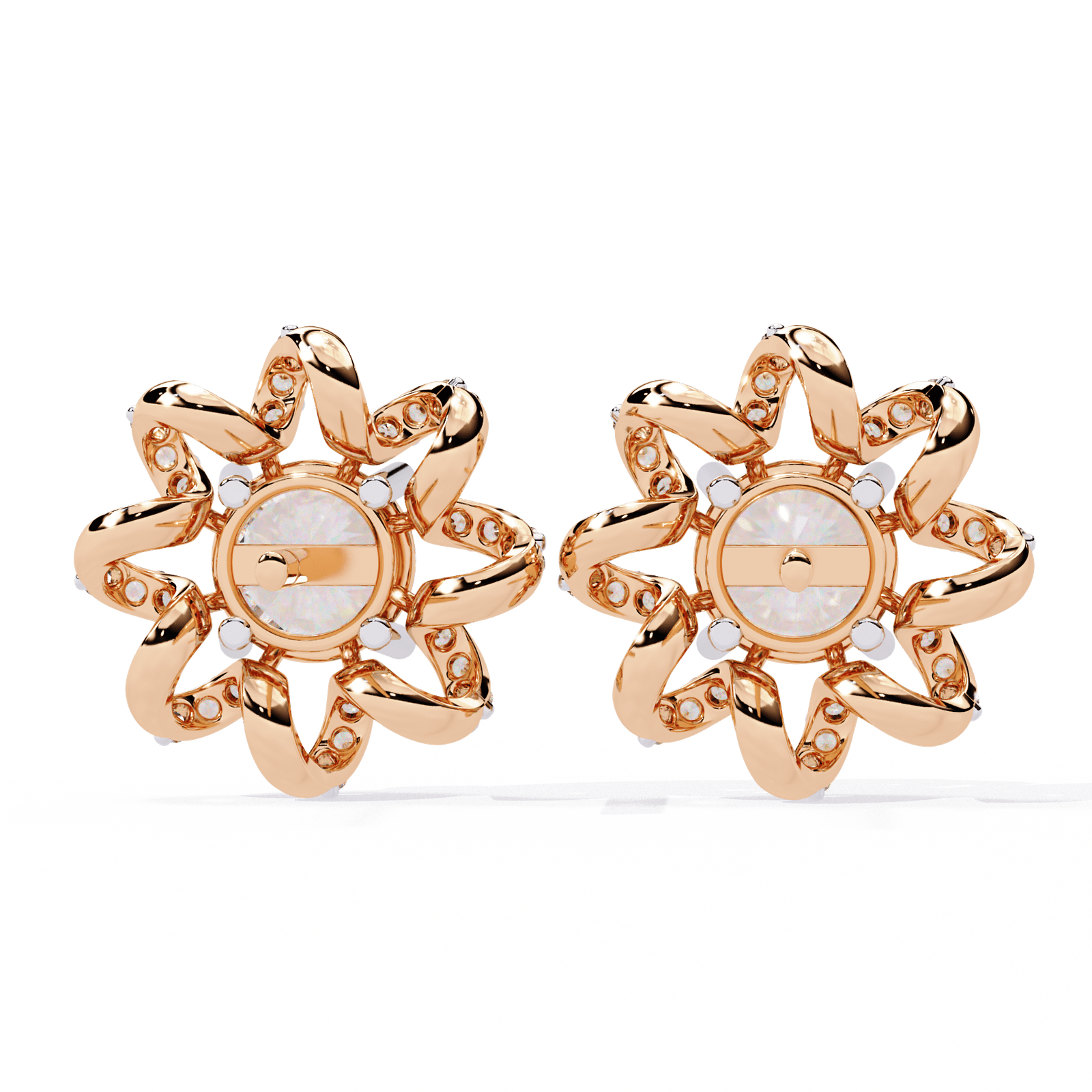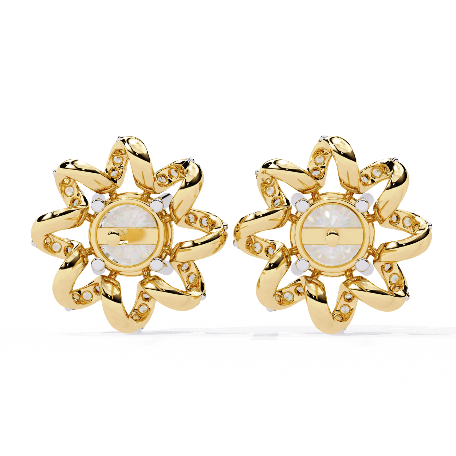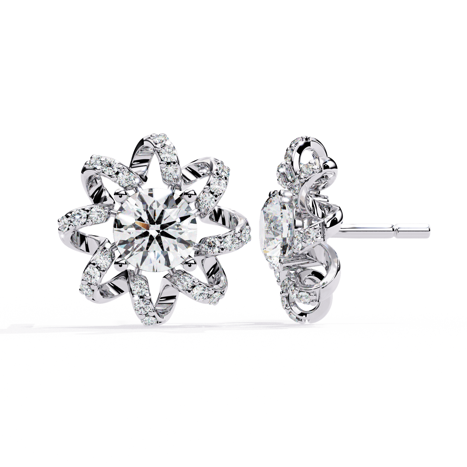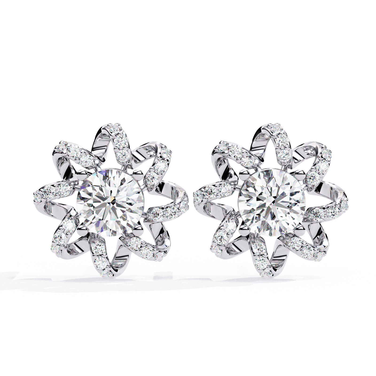 A radiant fusion of art and elegance, these earrings capture the essence of a starburst in full bloom. Twisting ribbons of gold or rose gold, delicately encrusted with shimmering diamonds, spiral around a brilliant 1.93-carat center stone—creating a floral silhouette that feels both ethereal and powerful. Weighing 4.25 grams, these earrings are the perfect blend of lightweight luxury and celestial glamour, making them your go-to piece for timeless sophistication with a hint of drama.