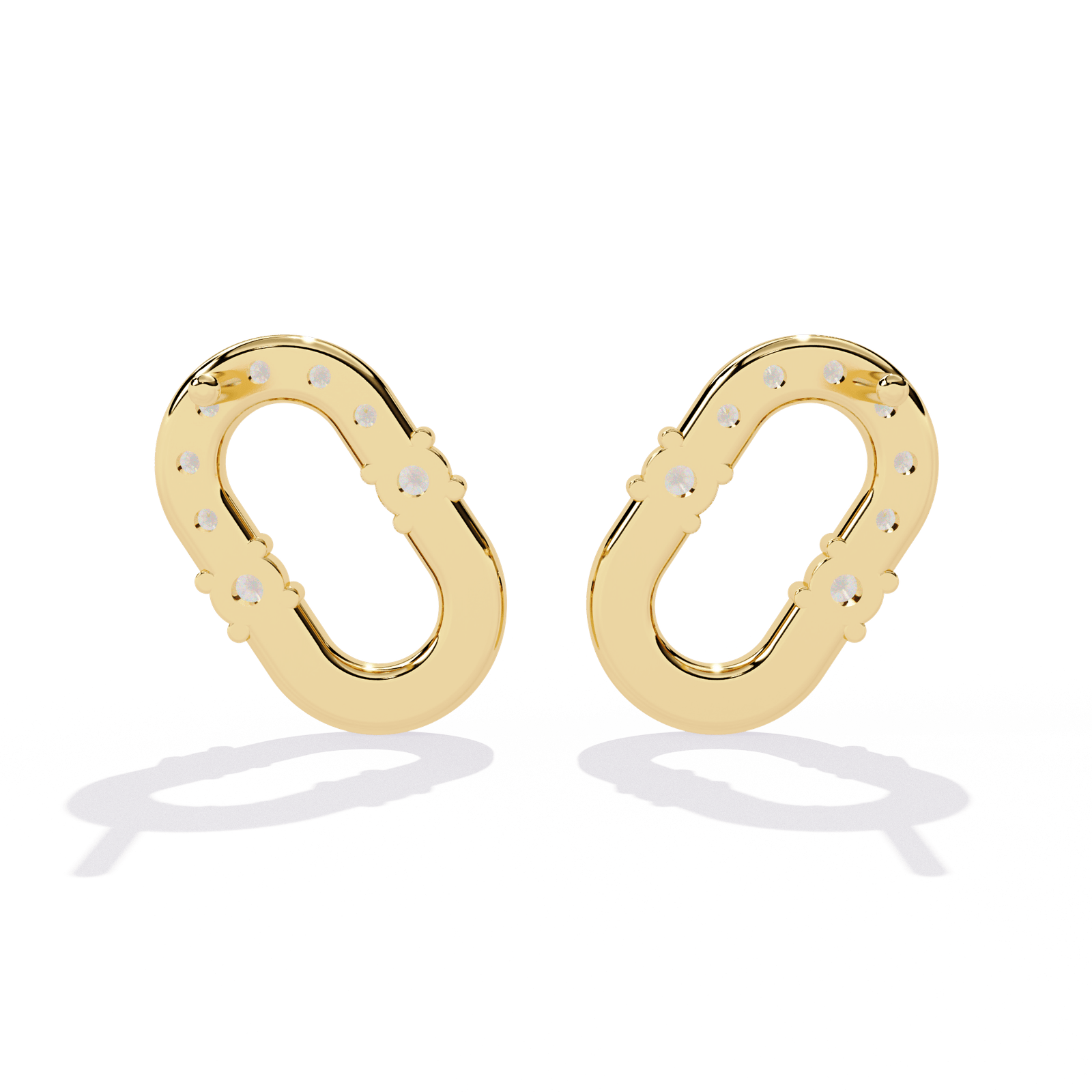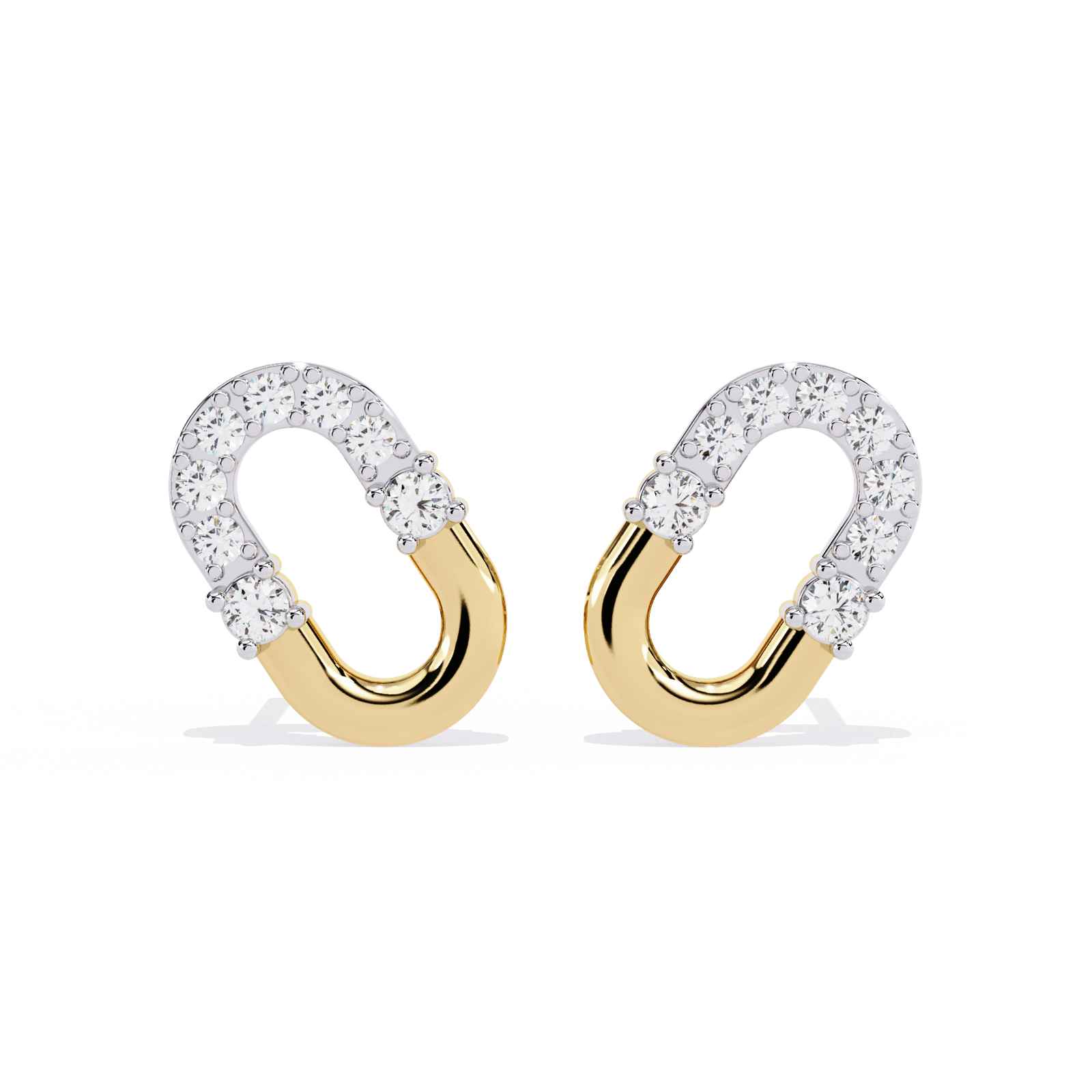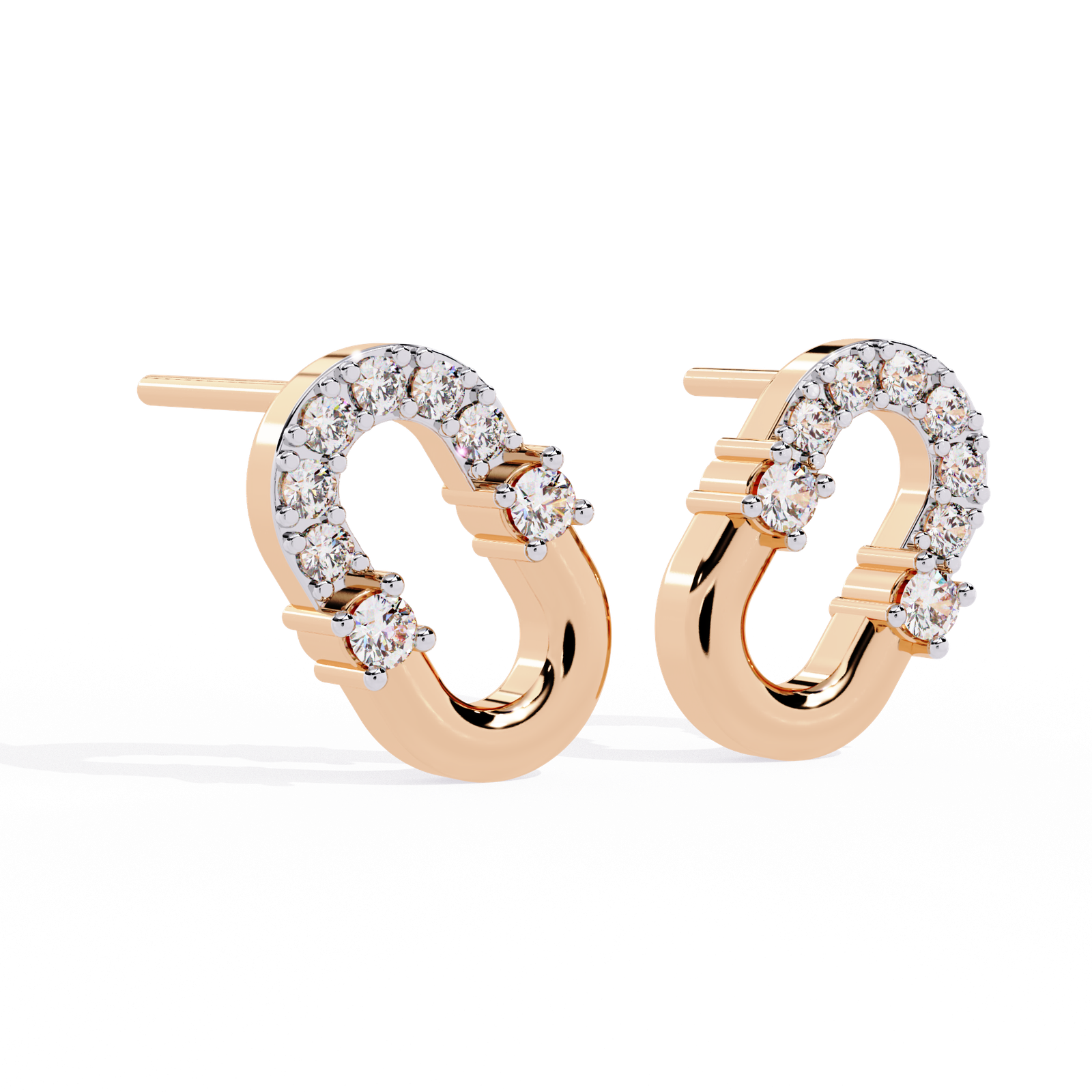 Gracefully minimalist yet undeniably majestic, the Regal Link earrings blend understated elegance with a royal flair. Crafted in a radiant Gold or Rose gold or Platinum finish and weighing 3.18 grams, their sleek horseshoe silhouette is adorned with 0.21 carats of brilliant diamonds, reflecting light like a queen’s crown. These earrings exude quiet luxury—perfect for those who rule with subtle charm and effortless style.
