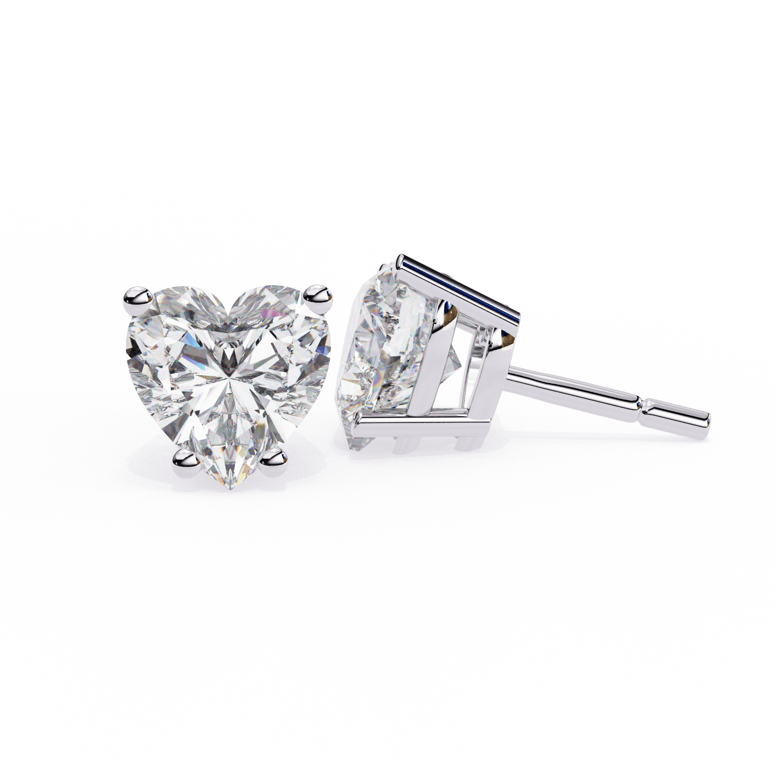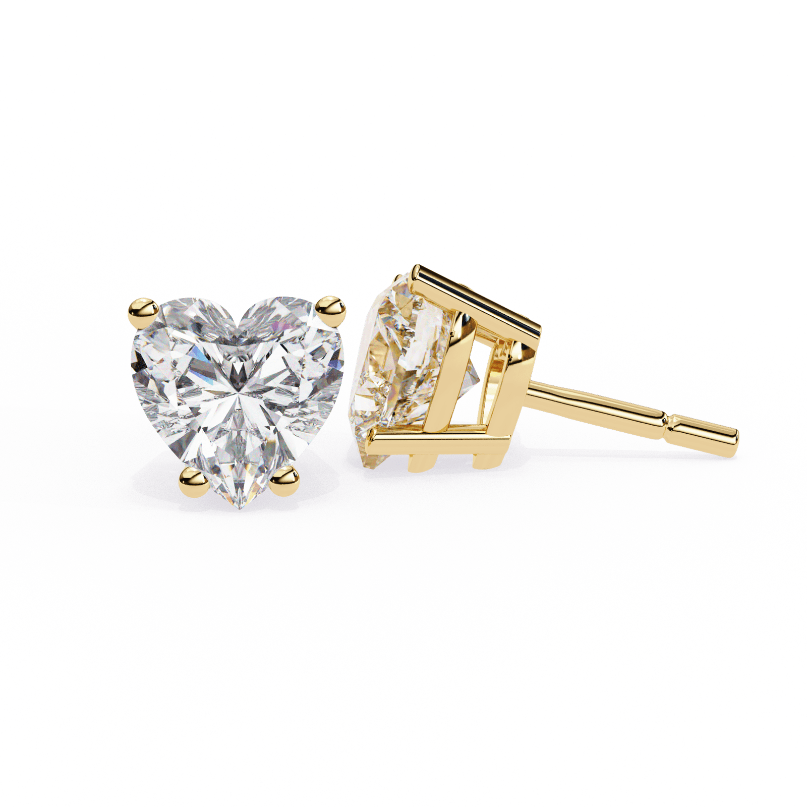 Add a touch of romance to your everyday style with these elegant heart-shaped diamond stud earrings. Each earring features a 7.00 mm heart-cut diamond, combining for a total of 2.43 carats of brilliance. Set in a refined yet sturdy prong basket, the design is cast in 1.68 grams of BIS hallmarked 14K gold, perfect for making a subtle yet stylish statement. Whether for a special occasion or daily wear, these studs express love in the most timeless way.