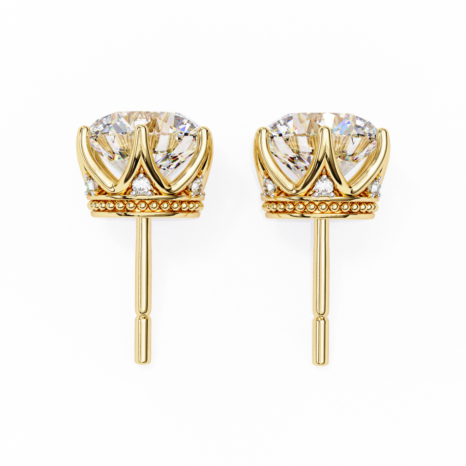 Royal Crown Round Diamond Stud Earrings