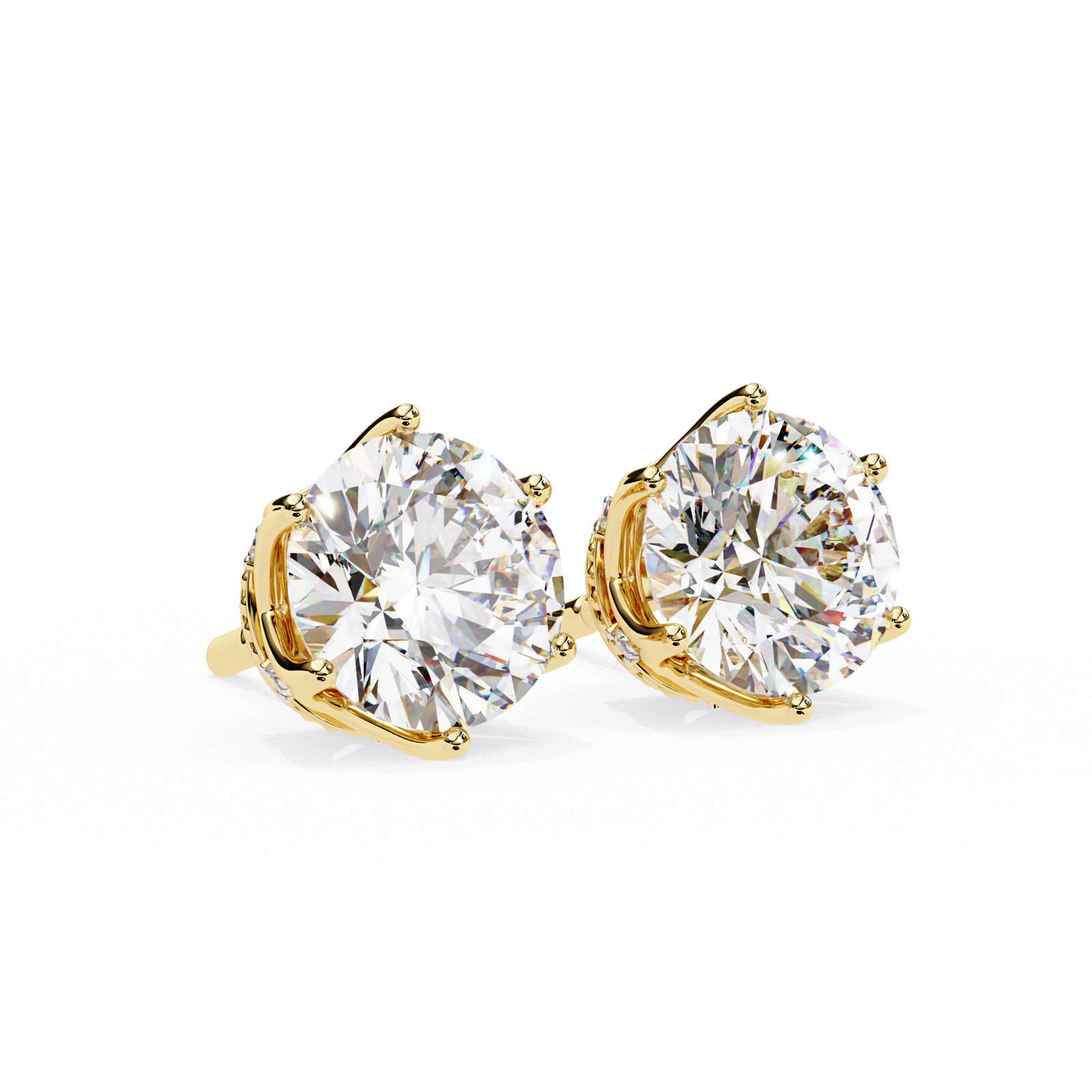 These majestic crown-style diamond stud earrings exude opulence and craftsmanship. Featuring a regal design with floral prongs and diamond accents, each earring is centered with a round brilliant cut diamond measuring 7.00 mm (total 2.57 carats) and enhanced by additional accent diamonds totaling 0.05 carats. The entire piece is crafted in 14K BIS hallmarked gold with an approximate gold weight of 1.11Â grams. These earrings offer a perfect blend of sophistication and sparkle, ideal for luxurious gifting or bridal wear. Each piece comes certified by IGI, GIA, or SGL