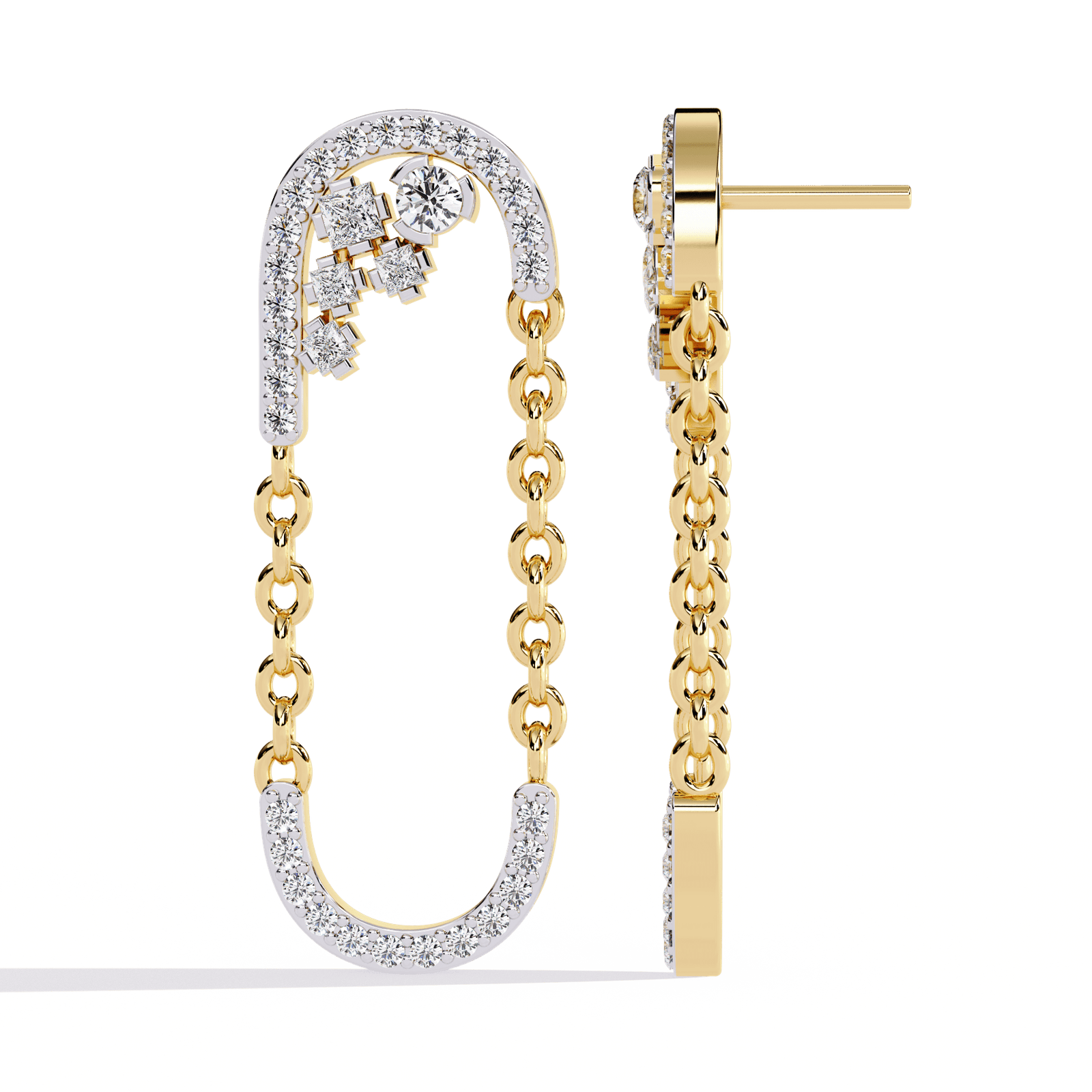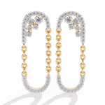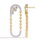 Drape yourself in the elegance of a thousand sparkles. Royal Drizzle is not merely a pair of earrings — it’s an ode to grandeur. Suspended from a glistening arc adorned with 0.48 carats of meticulously set diamonds, a cascading chain of golden links forms a poetic loop, swaying like whispers of royalty.