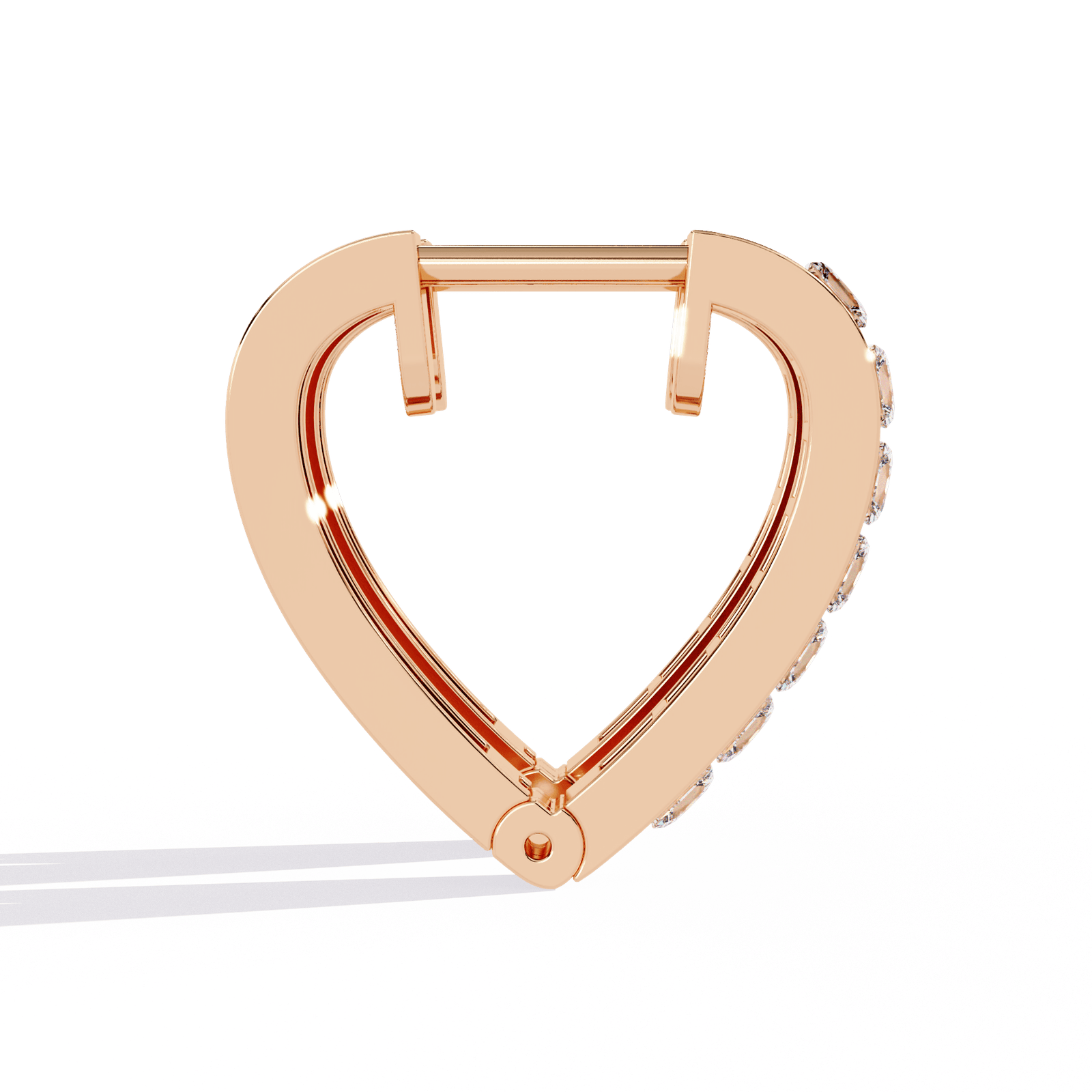 Celebrate modern romance with these stunning heart-shaped diamond hoops, designed to make a bold yet graceful statement. Crafted in elegant rose-toned gold and adorned with 0.83 carats of sparkling princess-cut diamonds, each stone is meticulously set to reflect brilliance with every turn. With a substantial gold weight of 4.35 grams, these earrings strike the perfect balance between contemporary edge and timeless charm—ideal for those who wear their heart with style and sophistication.